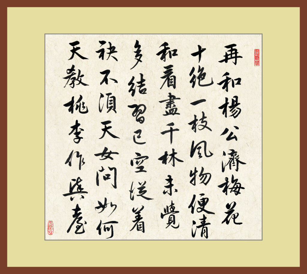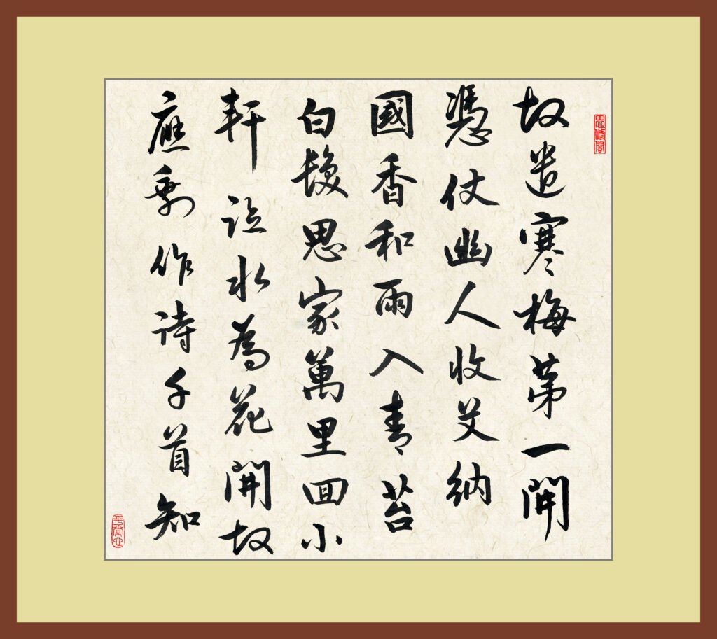 天教桃李作舆台,故遣寒梅第一开。凭仗幽人收艾纳,国香和雨入青苔。