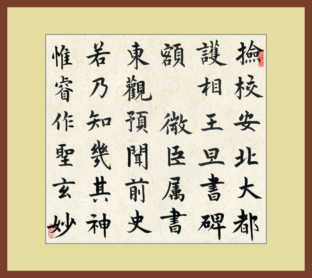 太子中舍人行著作郎臣虞世南奉敕撰并书,司徒并州牧太子左千牛率兼捡校安北大都护相王旦书碑额