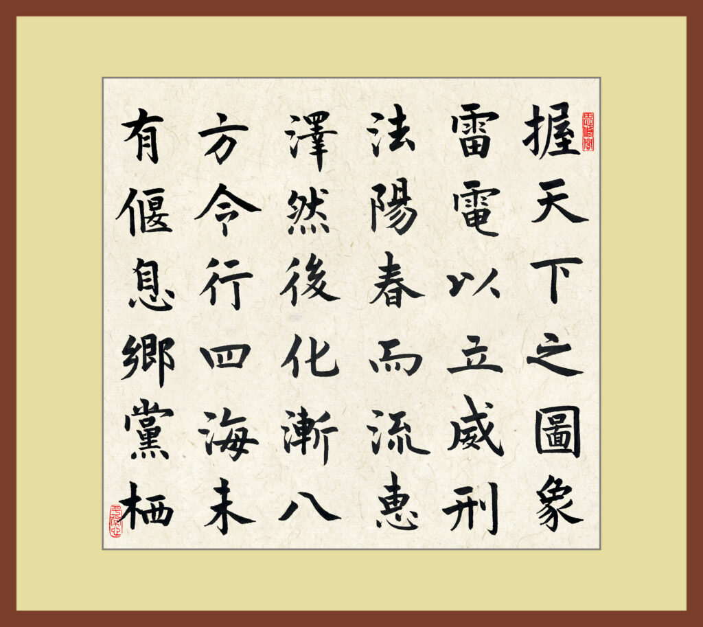 名居域中之大,手握天下之图。象雷电以立威刑,法阳春而流惠泽。然後化渐八方,令行四海。